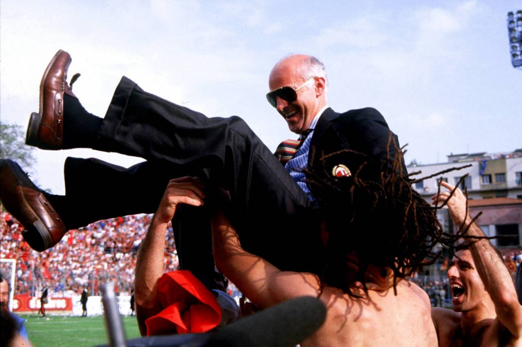 É conhecido que Sacchi confiava cegamente nas três linhas do 4-4-2 e treinava determinados padrões durante meses unindo seus quatro defensores com uma corda. Sobre isso, Capello me contou que seu antecessor no Real Madrid, Floro, então apelidado de o Sacchi espanhol, lhe confessou certa vez que para ele era praticamente o mesmo ter no time Redondo ou qualquer outro volante, já que as funções estavam previamente estabelecidas. Frikismo completo.