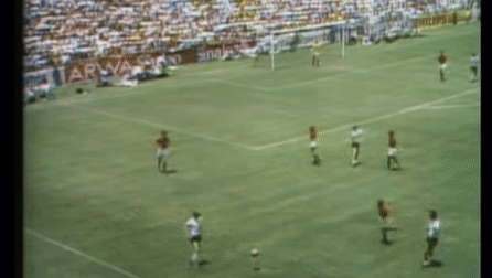 Zico sabe que deve esperar seu companheiro chegar. Ele segura dois defensores antes de devolver o passe para o Sócrates, capitão da equipe.